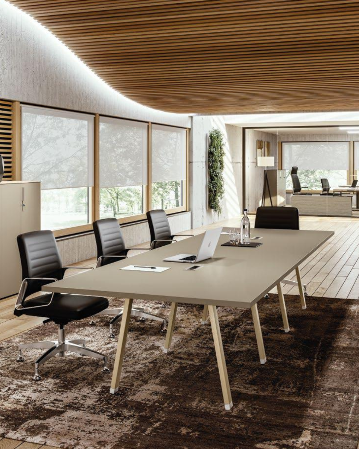 Les tables de réunion Atreo, disponibles en format individuel ou multiple, se déclinent avec pieds trapèze ou droits, permettant de créer un espace professionnel harmonieux et accueillant.