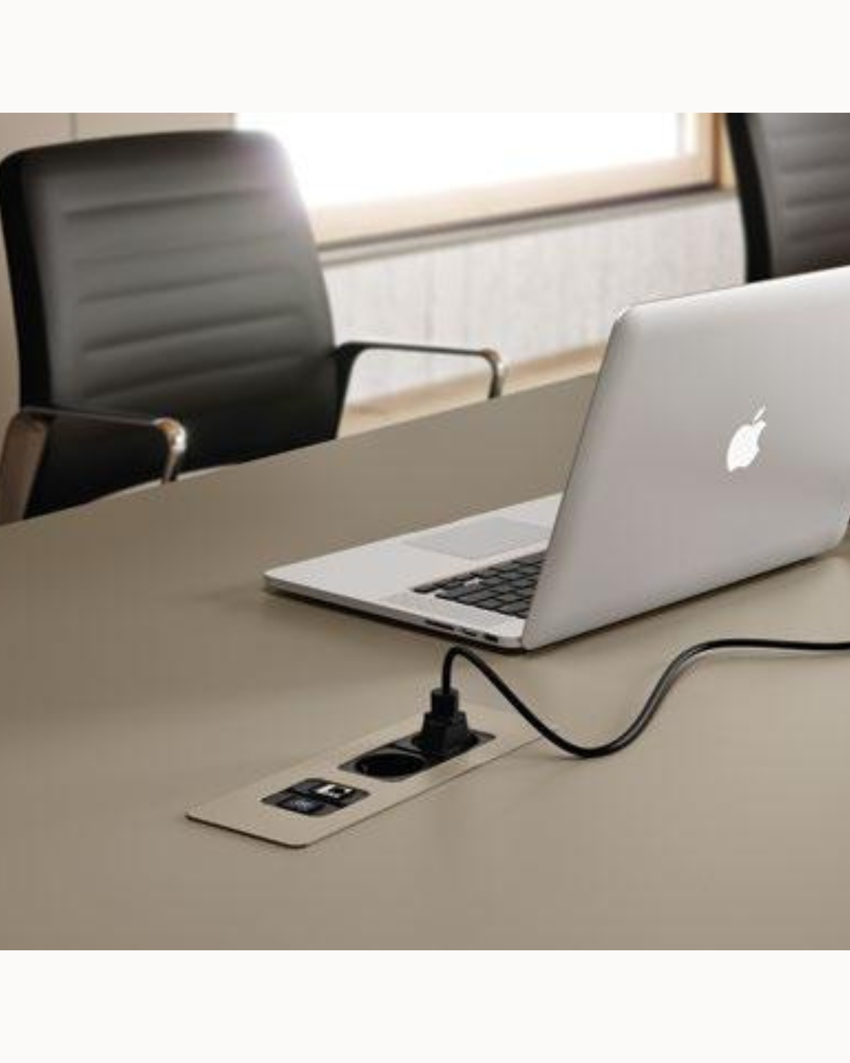 Grâce aux modules Flat, l’électrification du poste se fait facilement et proprement, avec des prises intégrées au plateau.