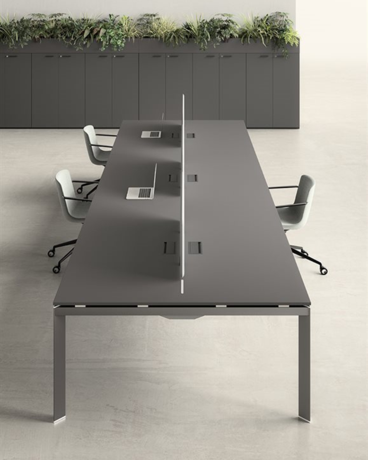 Bureau Open Space ENTITY : bench modulaire professionnel au design rectangulaire unique avec détails ABS effet chrome.