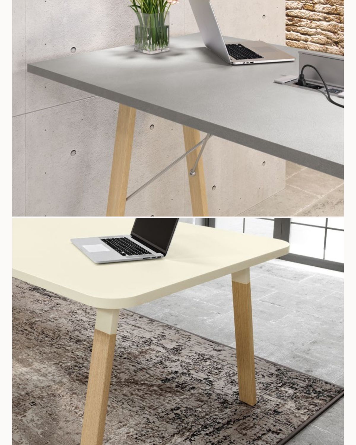 - Configurations : Bureau simple, table de réunion, table haute