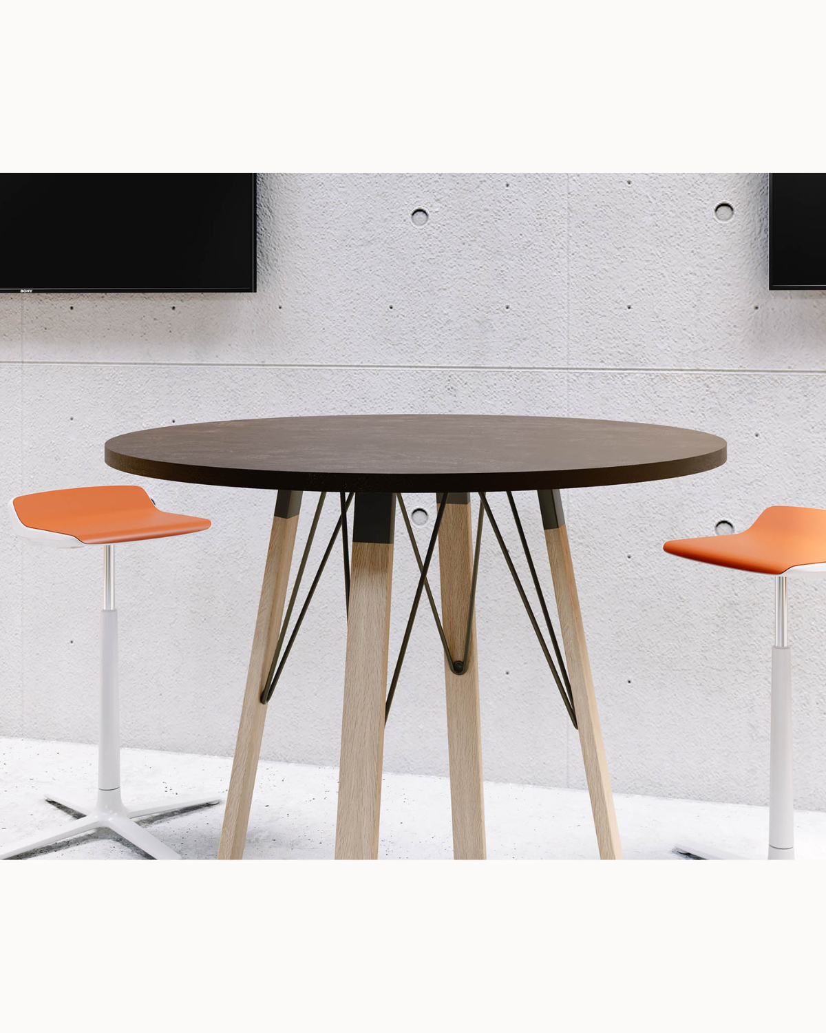 - High Table : Pied de 102 cm avec tirants métalliques renforcés, assurant stabilité et support de grandes dimensions (Ø120 cm ou 280×80 cm max).