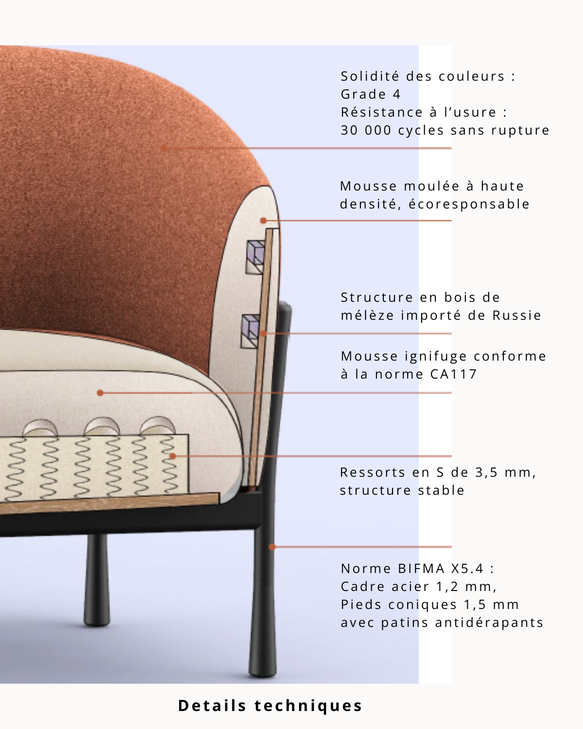 5. Ressorts en S de 3,5 mm – assise stable et durable