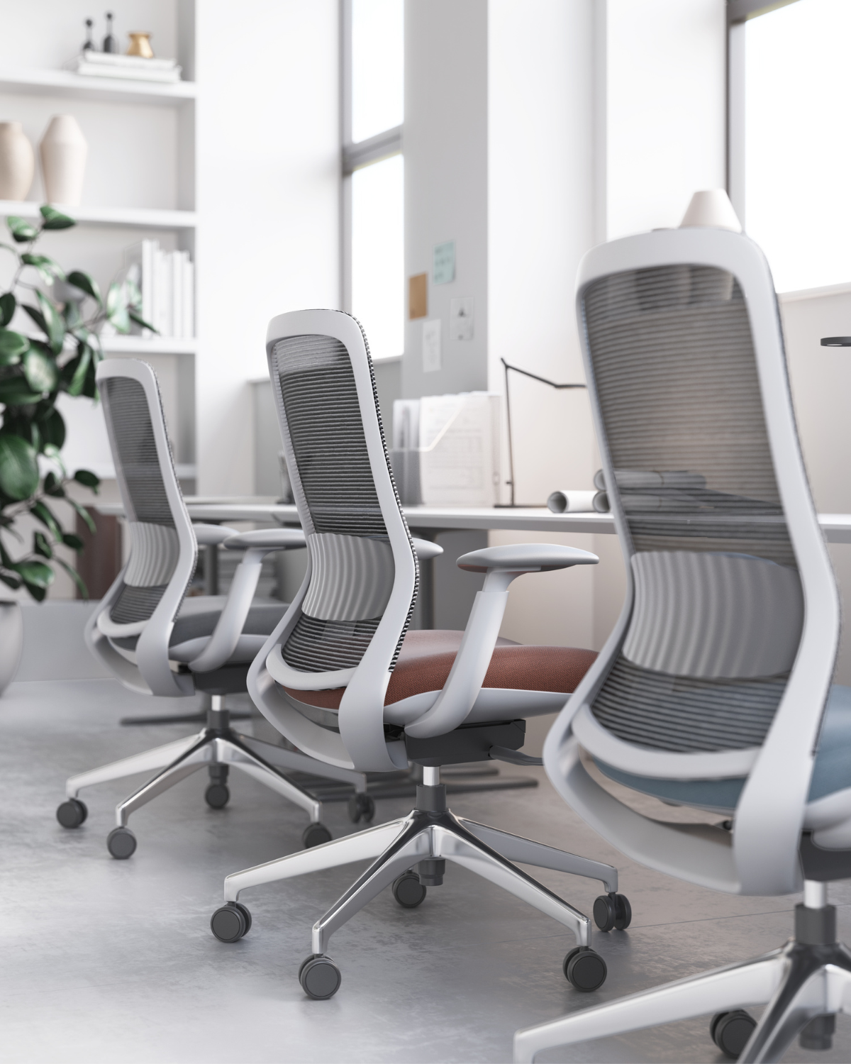 Sa silhouette moderne gris clair s’intègre parfaitement dans les bureaux élégants et contemporains, à Casablanca comme partout au Maroc.