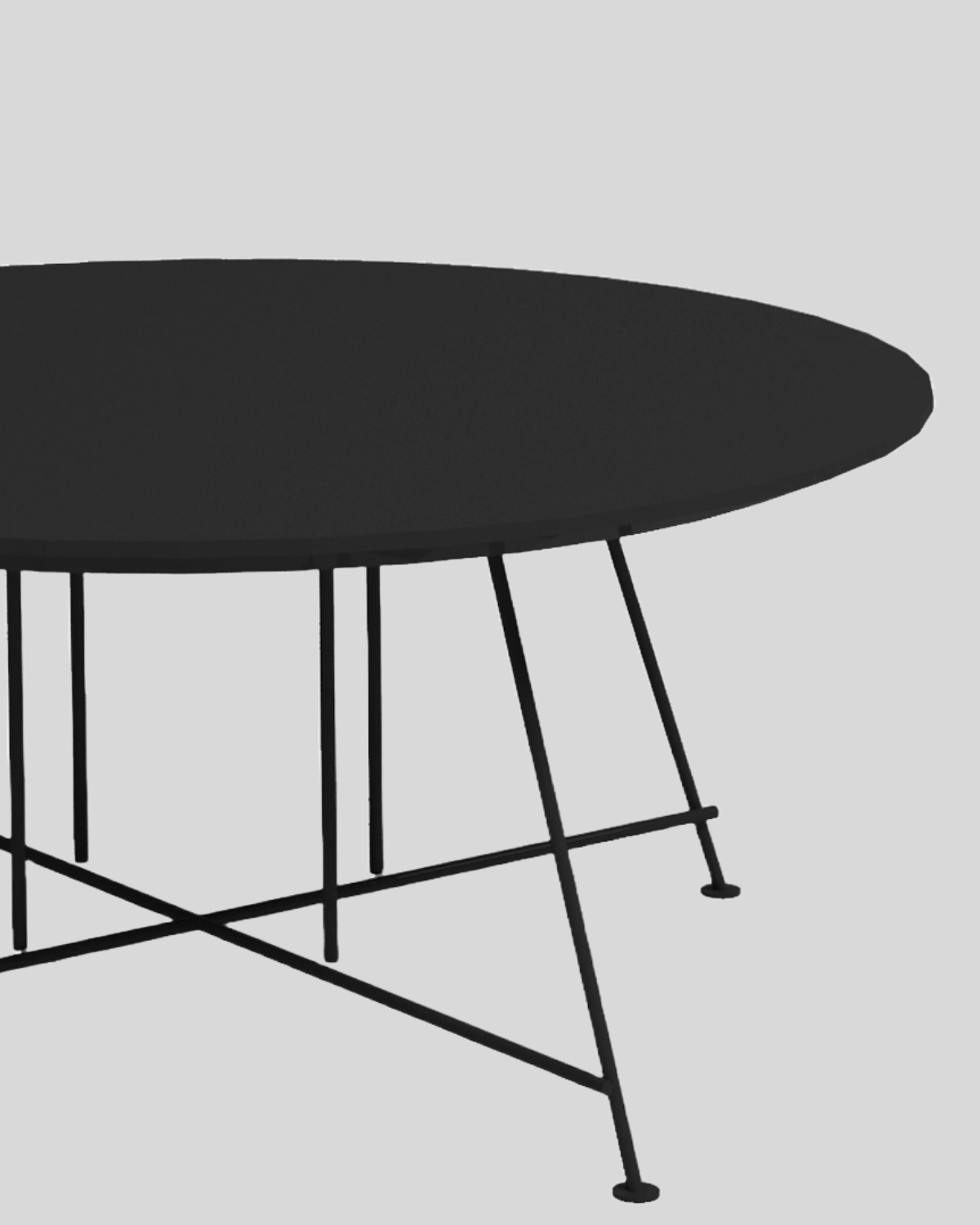 Plateau : Forme circulaire, finition noire laquée, bords biseautés