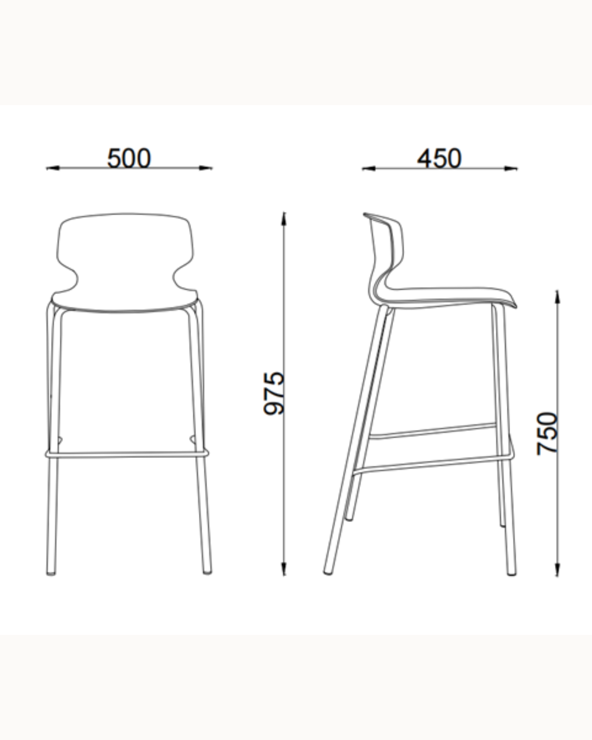 Catalogue click button (2)Tabourets de bureau HI PAD, structure acier chromé, assise PP renforcée, hauteur 750 mm, idéals pour bureaux modernes et espaces collaboratifs.